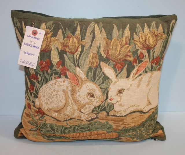 Machine Stitch Pillow featuring pair of rabbits in a garden Machine Stitch Pillow featuring pair of rabbits in a garden