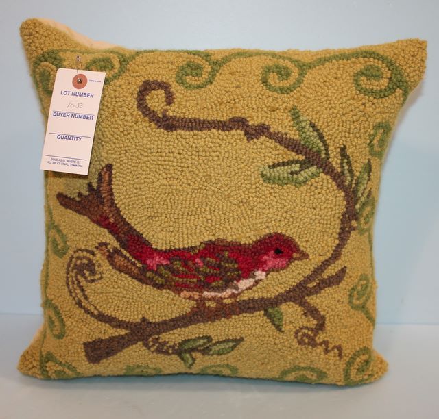 Green Hooked Throw Pillow with red bird on a branch Green Hooked Throw Pillow with red bird on a branch