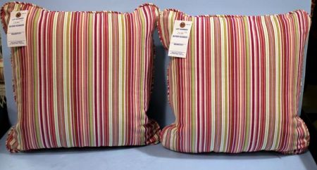 Pair of Bright Pink and Green Throw Pillows; 15" dia. Pair of Bright Pink and Green Throw Pillows; 15" dia.