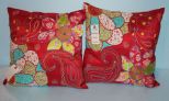 Pair of Red Pier 1 Throw Pillows with Multi-Color Appliqued Flowers; 15" x 15" Pair of Red Pier 1 Throw Pillows with Multi-Color Appliqued Flowers; 15" x 15"