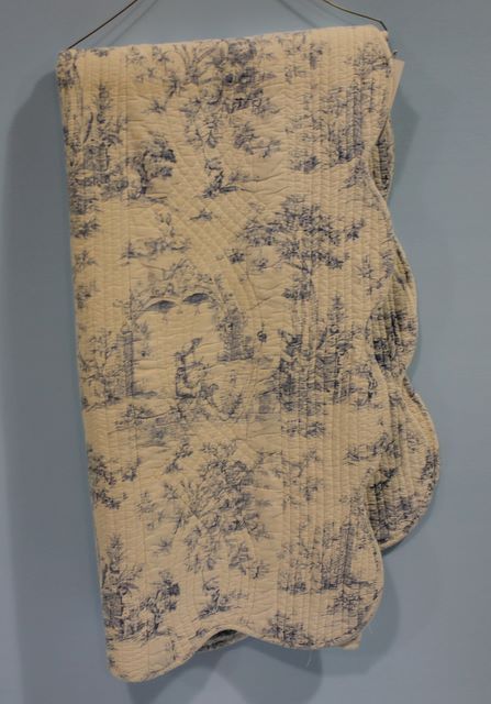 Blue and White Twoile Quilted Coverlet with scallop edge; 57" w., 59 1/2" l. Blue and White Twoile Quilted Coverlet with scallop edge; 57" w., 59 1/2" l.