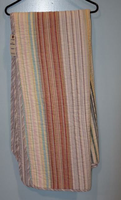 Small Striped Reversible Quilt, cotton; 25" w., 58 1/2" l. Small Striped Reversible Quilt, cotton; 25" w., 58 1/2" l.
