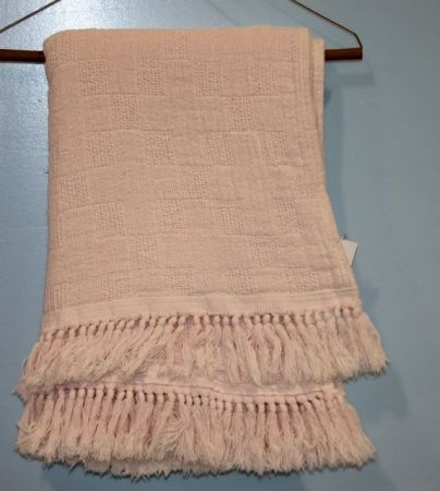 Soft Pink Cotton Throw with fringe; 42" w., 70 1/2" l. Soft Pink Cotton Throw with fringe; 42" w., 70 1/2" l.