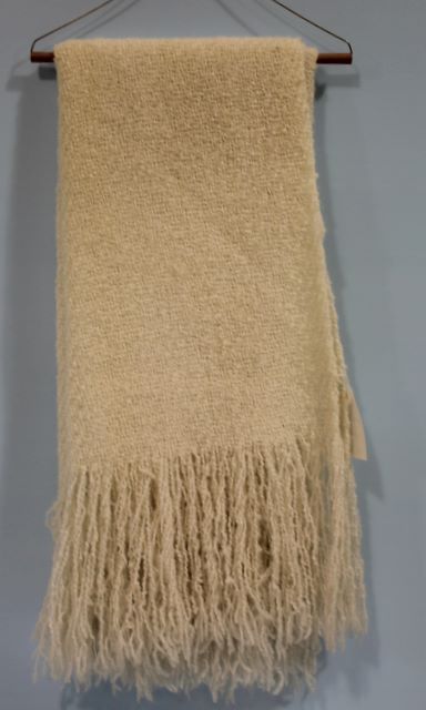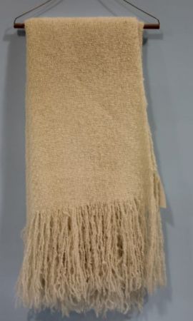 Fluffy Pile White Throw with long fringe; 50" w., 62" l. Fluffy Pile White Throw with long fringe; 50" w., 62" l.