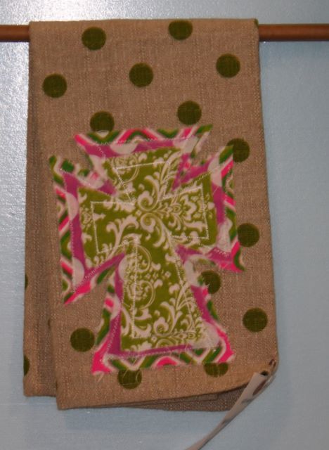 Green Polka Dot Accent Towel with appliqued crosses; 15 1/2" w., 22" l. Green Polka Dot Accent Towel with appliqued crosses; 15 1/2" w., 22" l.