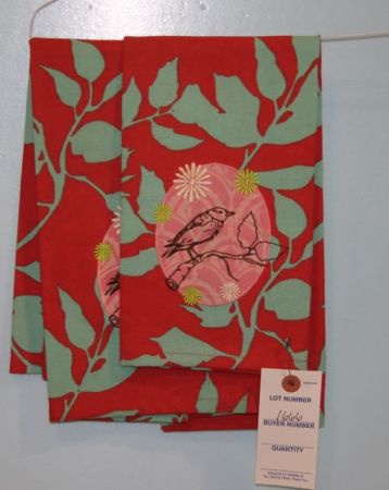 1666 Pair of Red Kitchen Towels with Appliqued Bird
