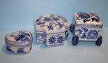 Three Blue and White Covered Boxes Three Blue and White Covered Boxes
