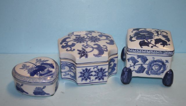 1667 Three Blue and White Covered Boxes