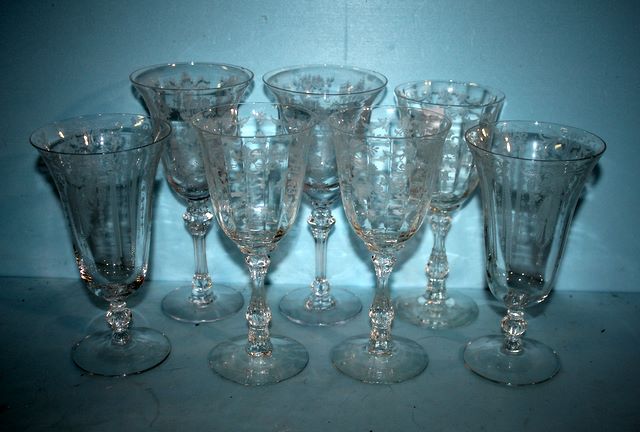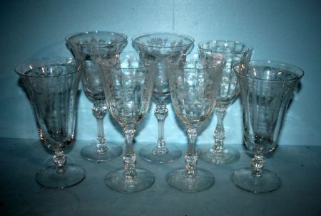Seven Crystal Stems (some small flakes); 7 1/2" h. Seven Crystal Stems (some small flakes); 7 1/2" h.