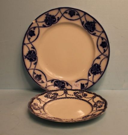 Two Blue and White Plates (some chips on both rims); 8", 10" dia. Two Blue and White Plates (some chips on both rims); 8", 10" dia.
