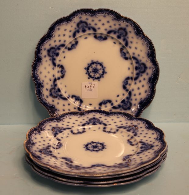 Five Flow Blue Salad Plates, antique, no chips circa 1900; 8" dia. Five Flow Blue Salad Plates, antique, no chips circa 1900; 8" dia.