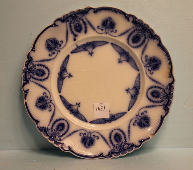 Flow Blue Plate, antique, some cracking; 9 7/8" dia. Flow Blue Plate, antique, some cracking; 9 7/8" dia.
