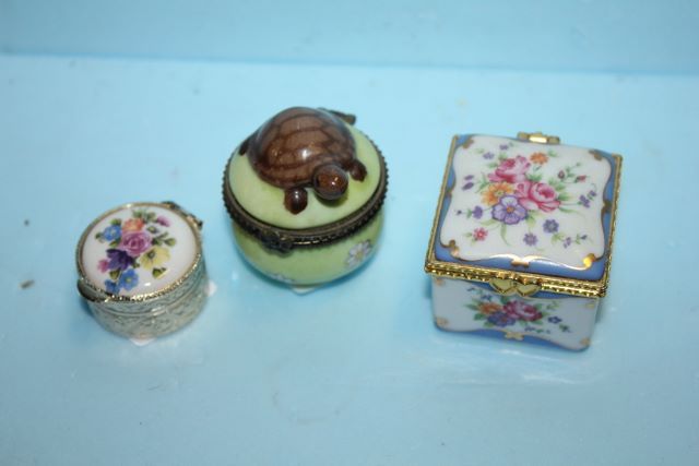 Three Pill Boxes; 1 1/2" square, 1" dia. Three Pill Boxes; 1 1/2" square, 1" dia.