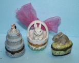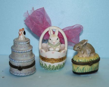 Three Pill Boxes, rabbits 1 1/2" x 2", wedding cake Three Pill Boxes, rabbits 1 1/2" x 2", wedding cake