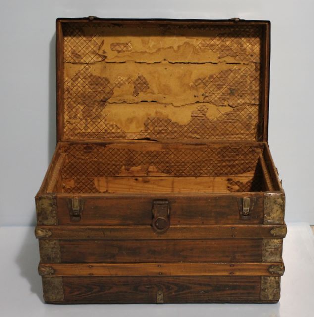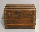Vintage wood and Iron Trunk; 18" d., 19 1/2" h., 31" w. Vintage wood and Iron Trunk; 18" d., 19 1/2" h., 31" w.
