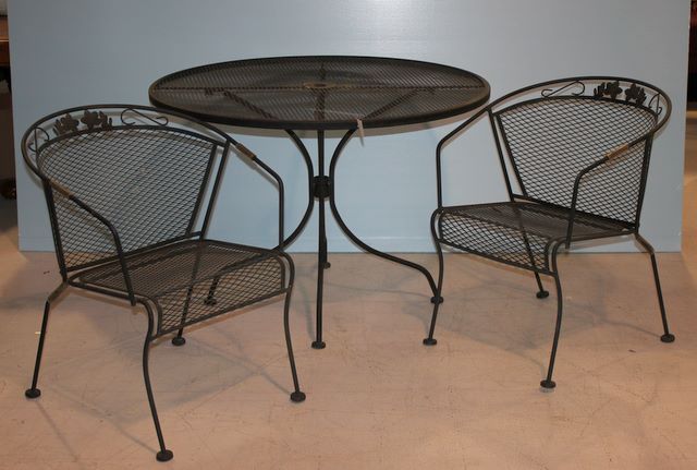 1748 Wrought Iron Patio Table and Two Chairs