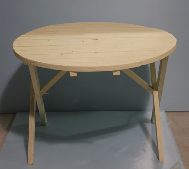 Wood Patio Table; 42" dia., 29" h. Wood Patio Table; 42" dia., 29" h.
