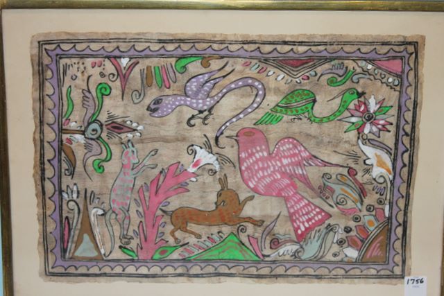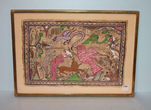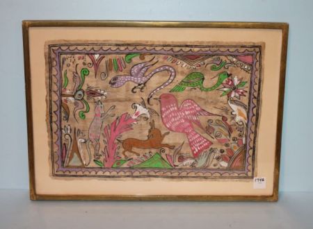 Tribal Art, Painting on Hide; 22" w., 14 1/2" h. Tribal Art, Painting on Hide; 22" w., 14 1/2" h.