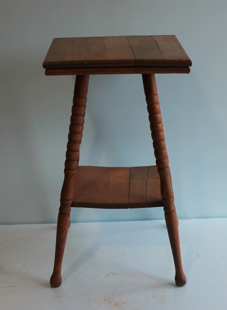 Oak Side Table, with shelf; 28" h., 16" w. Oak Side Table, with shelf; 28" h., 16" w.