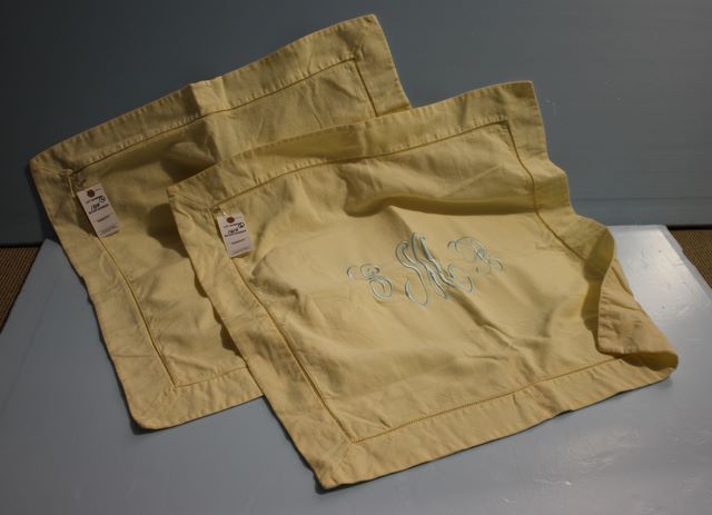 Pair of Yellow Euro Shams. Monogram in Blue "SMB" Pair of Yellow Euro Shams. Monogram in Blue "SMB"