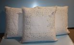Three Euro Pillows with yellow floral quilted shams, one with stain Three Euro Pillows with yellow floral quilted shams, one with stain