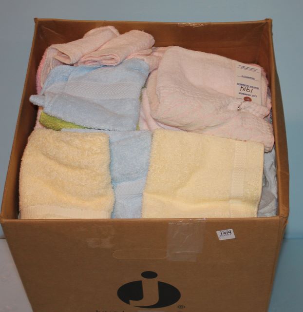 Large Group of Assorted Towels; ten pink bath towels, three blue bath towels, thirteen pink wash cloths, eleven other wash cloths Large Group of Assorted Towels; ten pink bath towels, three blue bath towels, thirteen pink wash cloths, eleven other wash cloths