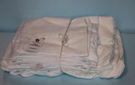 Three Cotton Flat Sheets, one queen size, two twin size, eyelet trim and cutwork and Three Cotton Pillow Cases Three Cotton Flat Sheets, one queen size, two twin size, eyelet trim and cutwork and Three Cotton Pillow Cases