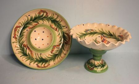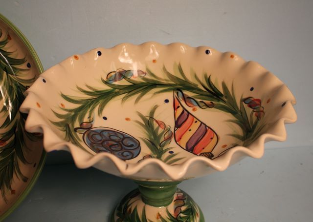 Gail Pittman Christmas Dip Dish and Gail Pittman Christmas Bowl; dish 12" dia., bowl 8" h., 11" dia. Gail Pittman Christmas Dip Dish and Gail Pittman Christmas Bowl; dish 12" dia., bowl 8" h., 11" dia.