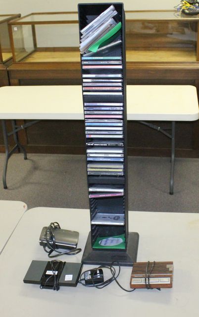 109 Electronics Radio Shack Weather alert, I live-IPod, I phone charger/speaker, rack of cds, realistic weather alert.