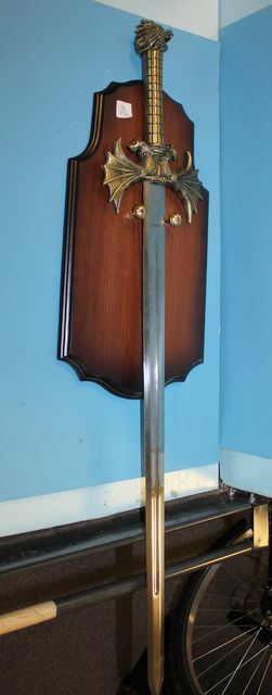 Decorative Sword displayed on Plaque, 39"L. Decorative Sword displayed on Plaque, 39"L.