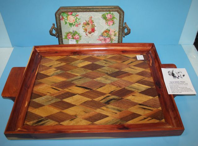 Walnut Tile inlay Beverage Tray and Victorian Small Dresser Tray 12"w. Walnut Tile inlay Beverage Tray and Victorian Small Dresser Tray 12"w.