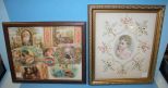 167 Embroidered Frame of Picture of Child and Framed Cigar Labels