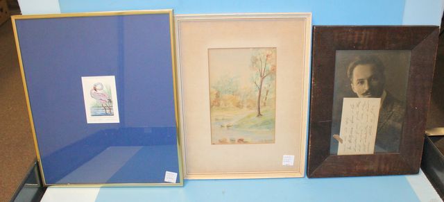 Picture of Gentleman with Letter from 1819, Vintage Landscape signed J.D. Pettit, and Small Limited Edition Print of Flamingo Picture of Gentleman with Letter from 1819 10"w., 14"h., Vintage Landscape signed J.D. Pettit 11"w., 14"h., and Small Limited Edition Print of Flamingo 2"w., 4"h. Picture of Gentleman with Letter from 1819, Vintage Landscape signed J.D. Pettit, and Small Limited Edition Print of Flamingo Picture of Gentleman with Letter from 1819 10"w., 14"h., Vintage Landscape signed J.D. Pettit 11"w., 14"h., and Small Limited Edition Print of Flamingo 2"w., 4"h.