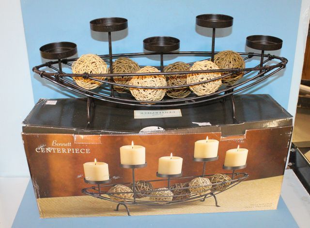 Decorative Iron Candle Centerpiece in box, 23"L., 7"w., 9"h. Decorative Iron Candle Centerpiece in box, 23"L., 7"w., 9"h.
