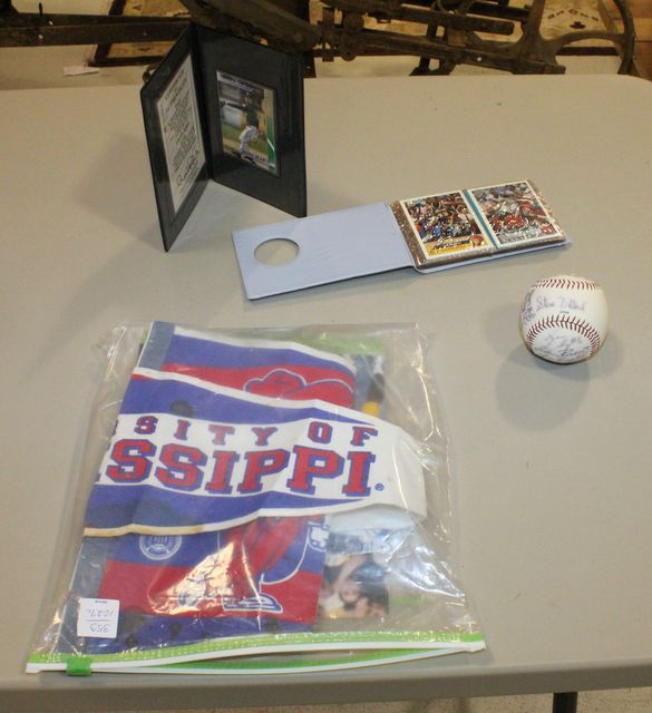 Ole Miss Banner Signed Archie Manning 18 (stained) , Signed David Nied baseball card, signed 8 x 10 Chris Warren picture, baseball, basketball cards. Ole Miss Banner Signed Archie Manning 18 (stained) , Signed David Nied baseball card, signed 8 x 10 Chris Warren picture, baseball, basketball cards.