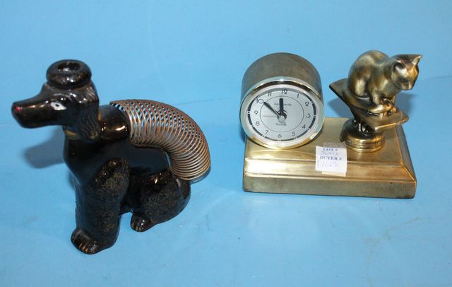 Brass Quartz Clock and Vintage Poodle Letter Holder. Brass Quartz Clock and Vintage Poodle Letter Holder.