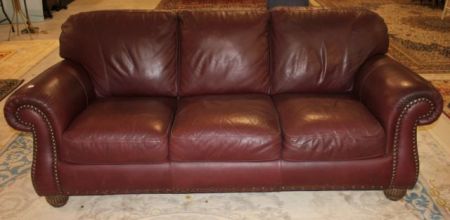 389 Faux Leather Three Cushion Sofa 79"w., 38"d., 37"h.