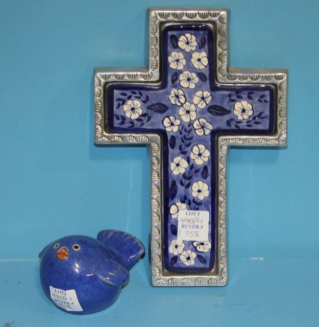 440 Blue and White Porcelain Cross and Blue Porcelain Bird