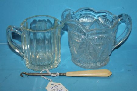 Celluloid Vintage Button Hook and Two Small Glass Pitchers Celluloid Vintage Button Hook and Two Small Glass Pitchers