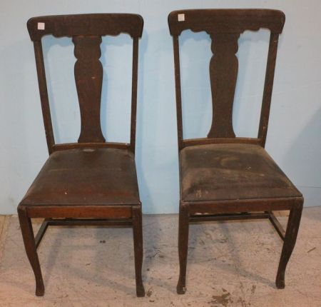 2 Oak T-Back Chairs 38"h. 2 Oak T-Back Chairs 38"h.
