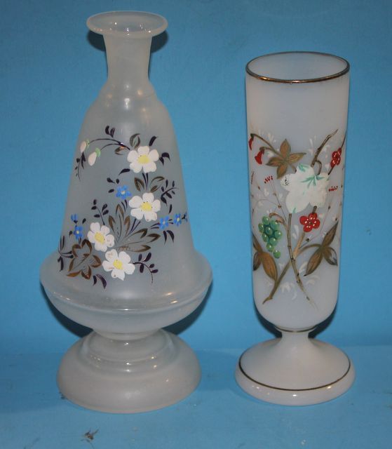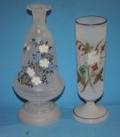 Two Handpainted Bristol Glass Vases 8"h. Two Handpainted Bristol Glass Vases 8"h.
