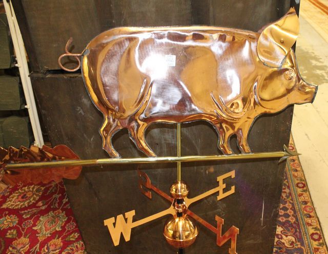 Reproduction Polished Pig Weathervane, 34"w., 47"h. Reproduction Polished Pig Weathervane, 34"w., 47"h.