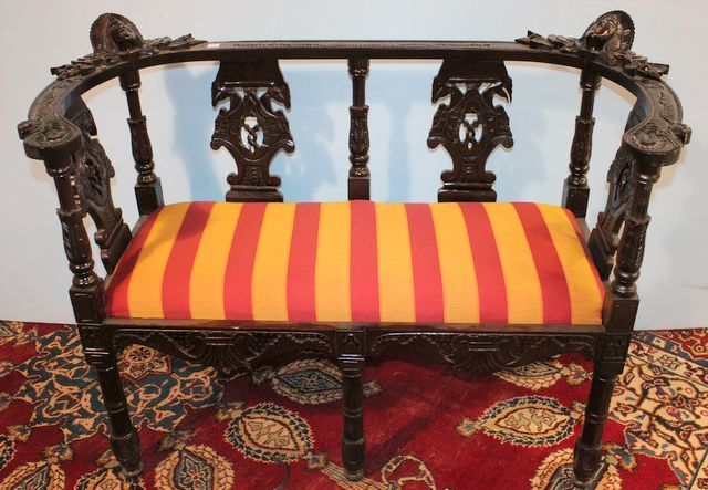 616 Reproduction Mahogany Curved End Settee with Carved Heads