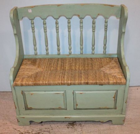 624 Reproduction Light Green Distressed Bench with Lift Up Seat