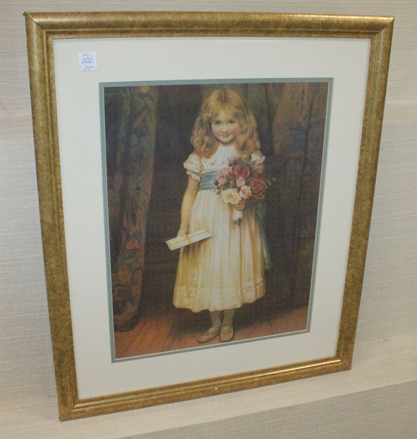 Flowers and a Letter Framed Print 0f Girl, 24"h., 28"h. Flowers and a Letter Framed Print 0f Girl, 24"h., 28"h.