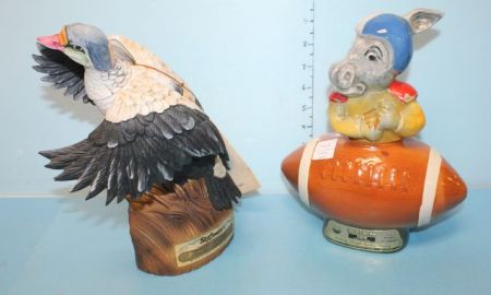 Beam 1972 Porcelain Donkey in Helmet on Football 10"h., and Ski Country Limited Edition Porcelain King Eider Duck, 11"h. Beam 1972 Porcelain Donkey in Helmet on Football 10"h., and Ski Country Limited Edition Porcelain King Eider Duck, 11"h.