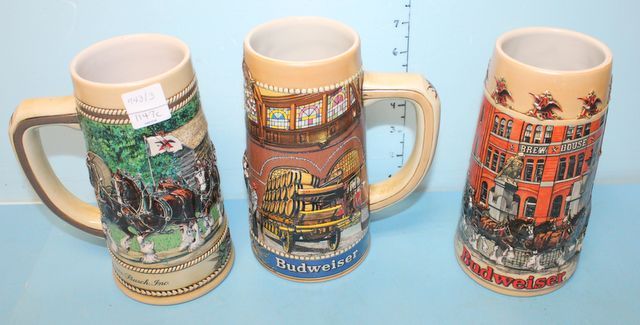 743 Three Steins National Historic Landmark Grants Cabin, St. Louis 7"h., Budweiser Clydesdale Stables 7"h., St. Louis Brew House 7"h.