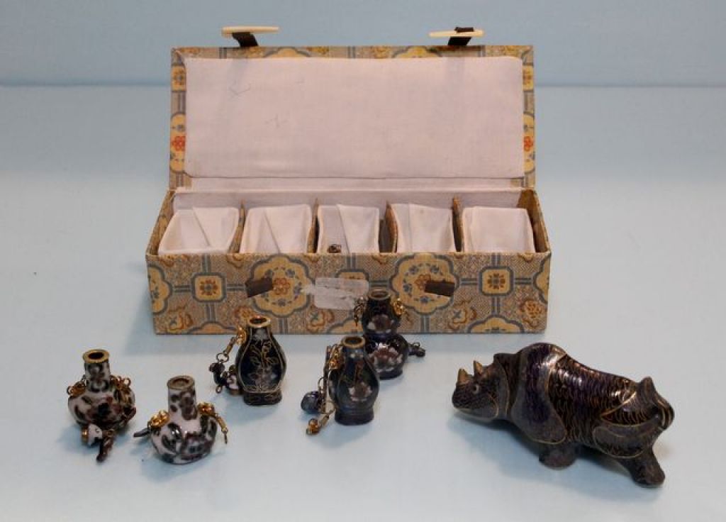 528 Five Cloisonne Vases & Cloisonne Rhino