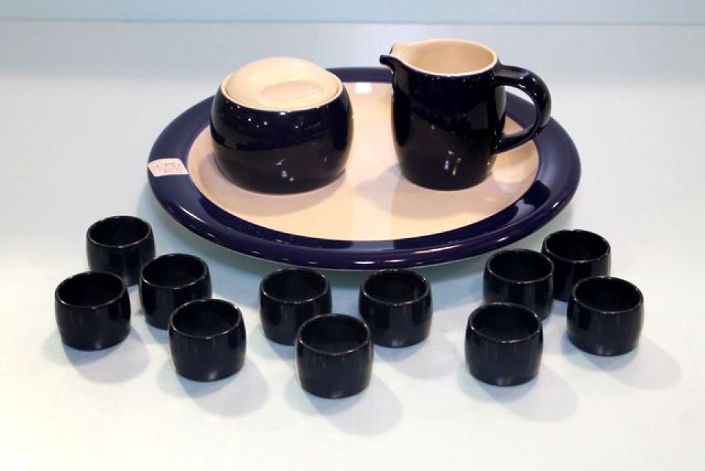 532 Mikasa Cobalt Sugar/Creamer, Charger & Eleven Napkin Rings