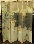 649 Six Panel Hand Painted on Paper Oriental Screen